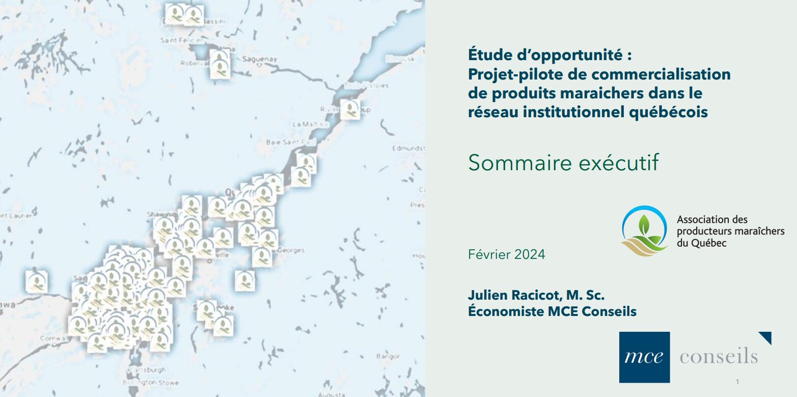 13 mars 2024 Autres Projet pilote de commercialisation de produits maraîchers dans le réseau institutionnel québécois – Sommaire exécutif Ouvrir