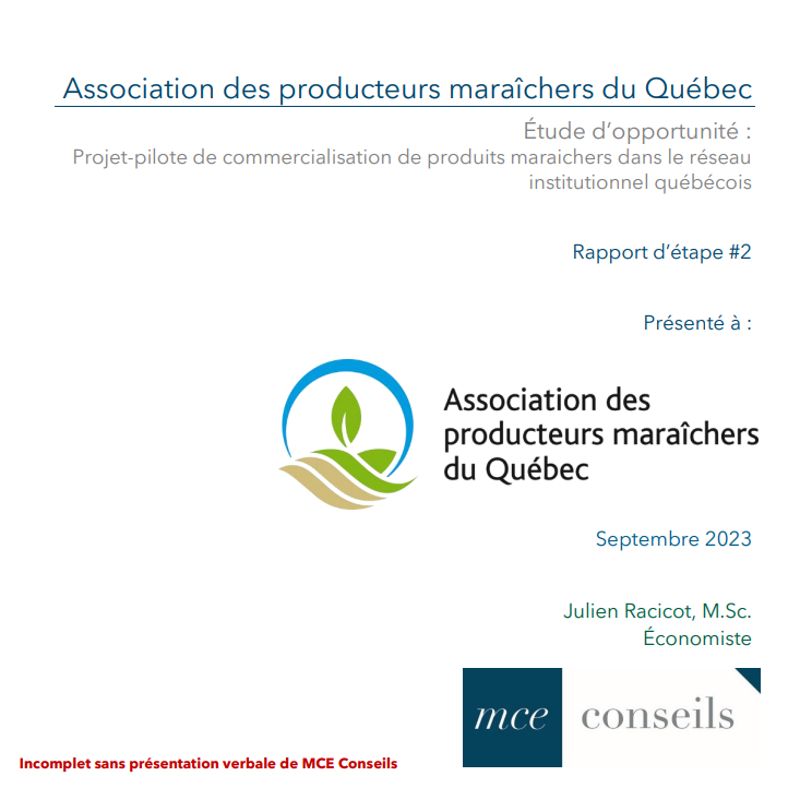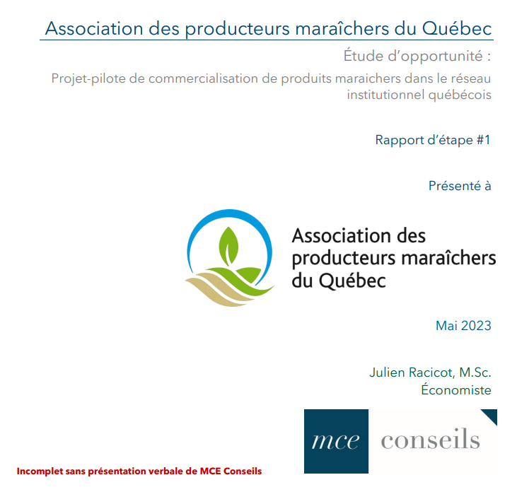 13 mars 2024 Autres Projet pilote de commercialisation de produits maraîchers dans le réseau institutionnel québécois- Rapport d’étape 1 Ouvrir